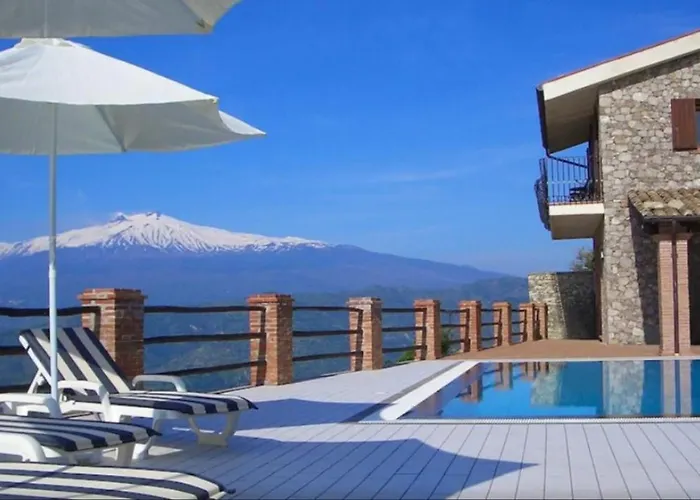 Villa Etna Mare - Pool Villa In Peaceful Location With Breathtaking Views Of The Sea, Mt Etna & Taormina - cu 2 dormitoare, este situat la aproape 25 de minute de mers pe jos de Piazza Duomo și își întâmpină oaspeții pentru a se bucura de schi pe zăpadă, drumeții și schi.